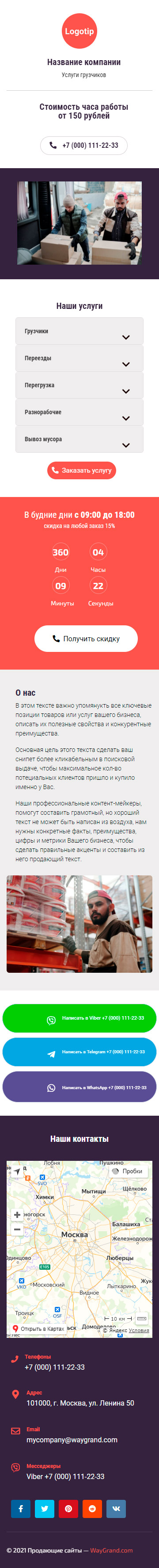 Закажите готовый продающий сайт визитка #2562101 в Керчь за 5-7 дня «под ключ»: свёрстан, отрисован и готов к рекламе. Тематика шаблона «Услуги грузчиков».