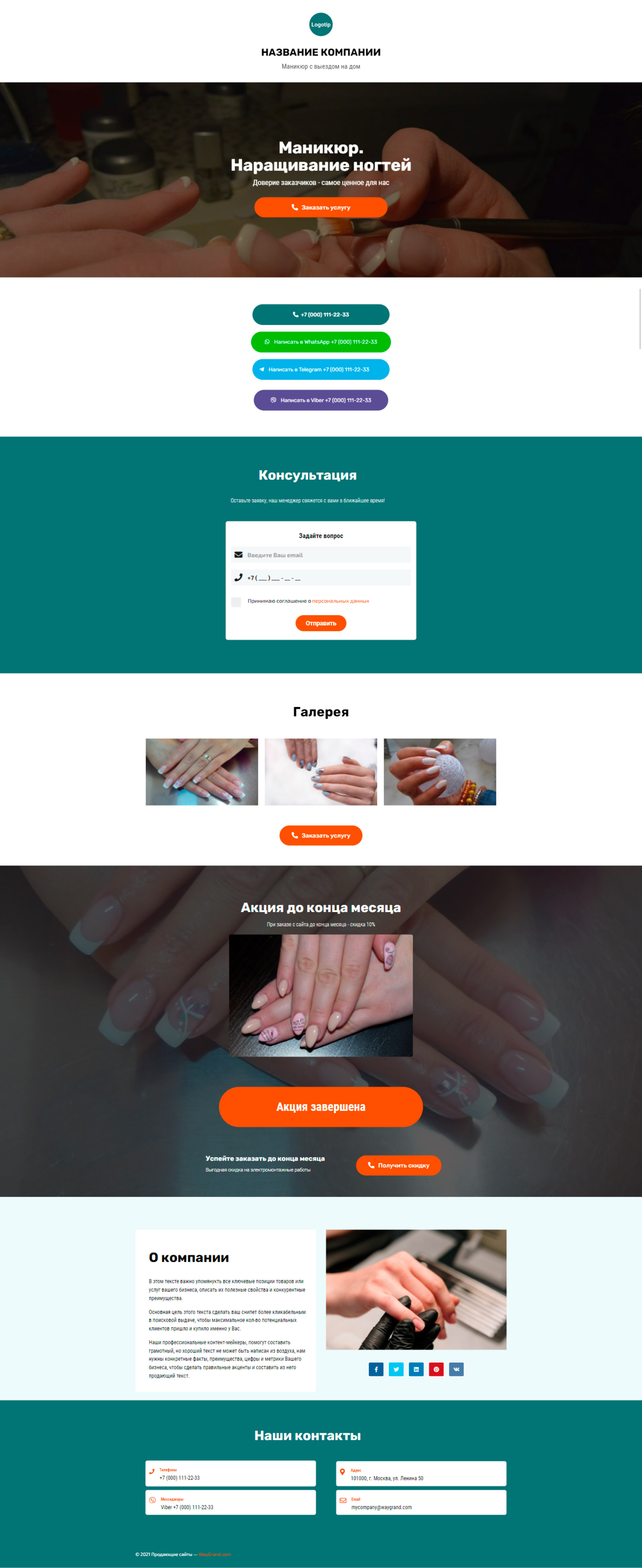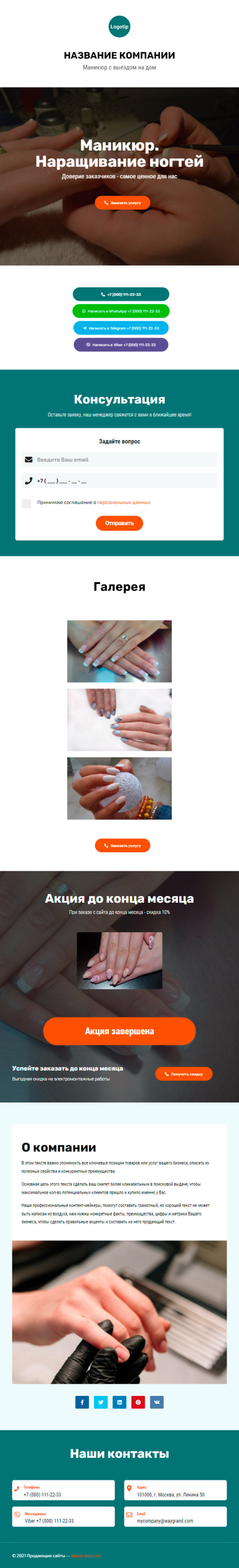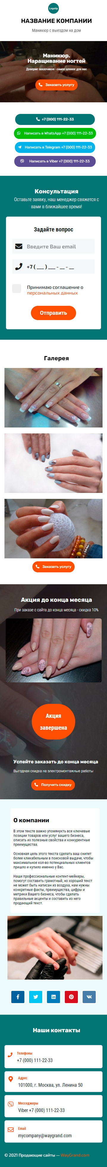 Закажите готовый продающий сайт визитка #1107101 в Керчь за 5-7 дня «под ключ»: свёрстан, отрисован и готов к рекламе. Тематика шаблона «Маникюр. Наращивание ногтей».