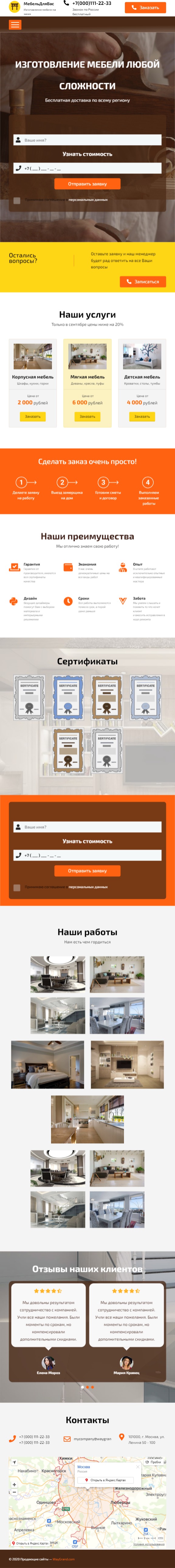 Закажите готовый продающий сайт лендинг #0903201 в Керчь за 1-3 дня «под ключ»: свёрстан, отрисован и готов к рекламе. Тематика шаблона «Изготовление мебели».