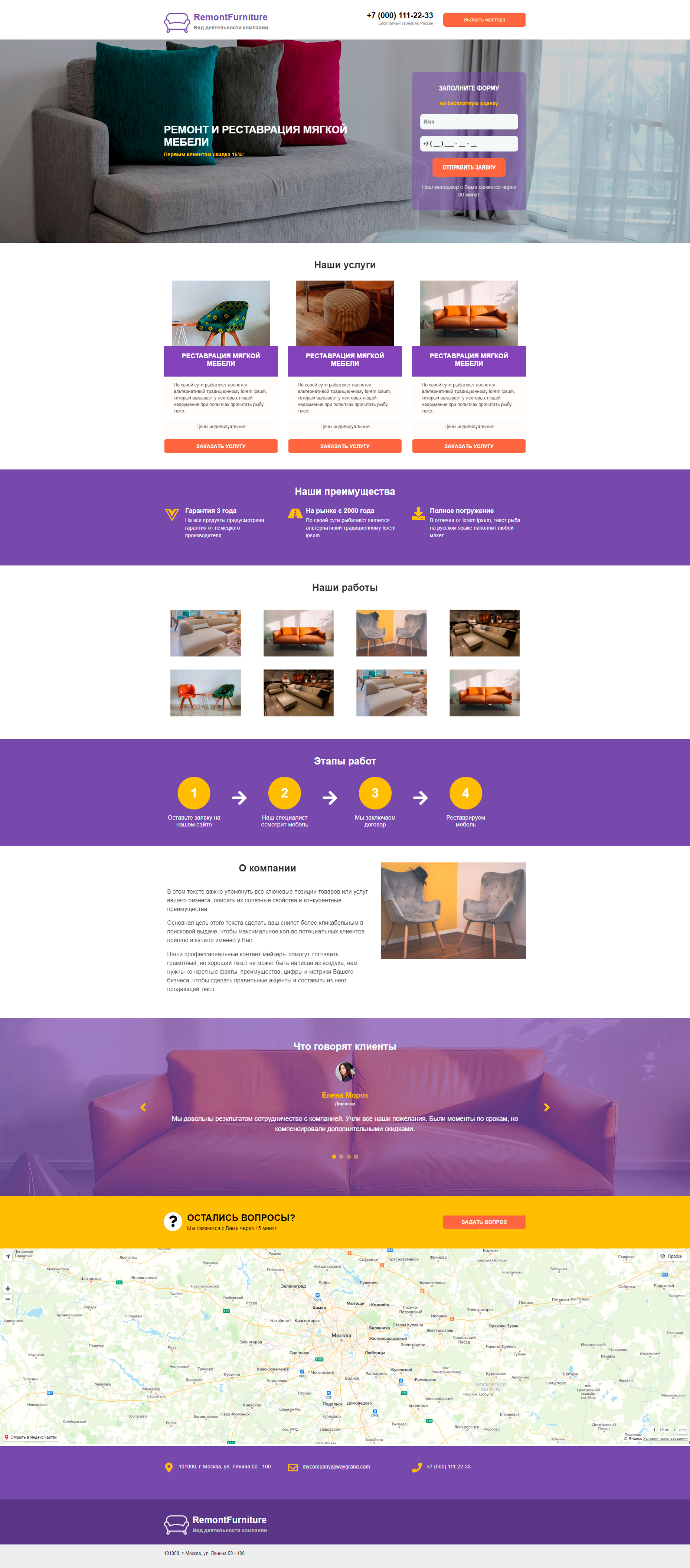 Закажите готовый продающий сайт лендинг #0924201 в Керчь за 1-3 дня «под ключ»: свёрстан, отрисован и готов к рекламе. Тематика шаблона «Ремонт и реставрация мебели».