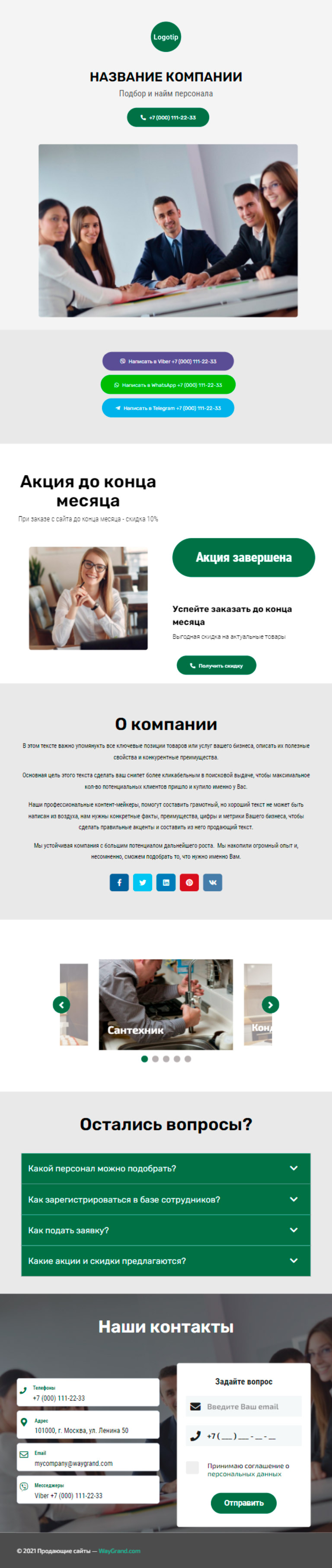 Закажите готовый продающий сайт визитка #1415101 в Керчь за 5-7 дня «под ключ»: свёрстан, отрисован и готов к рекламе. Тематика шаблона «Подбор и найм персонала».