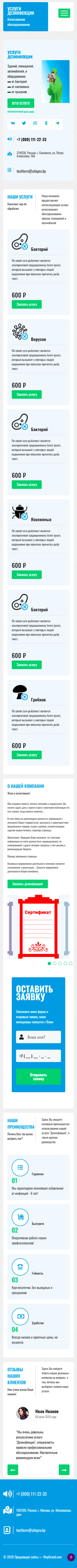 Закажите готовый продающий сайт лендинг #0608201 в Керчь за 1-3 дня «под ключ»: свёрстан, отрисован и готов к рекламе. Тематика шаблона «Услуги дезинфекции».