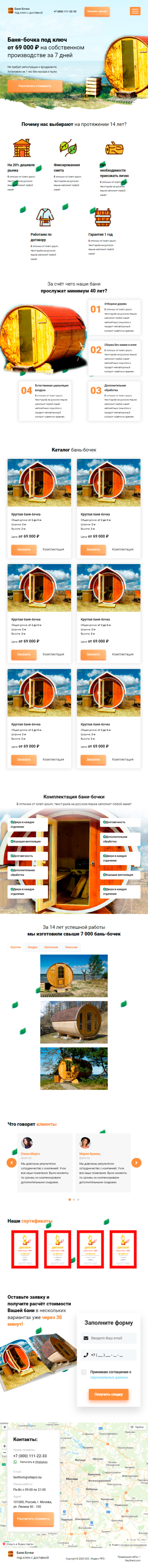 Закажите готовый продающий сайт лендинг #2172204 в Керчь за 1-3 дня «под ключ»: свёрстан, отрисован и готов к рекламе. Тематика шаблона «Баня-бочки».
