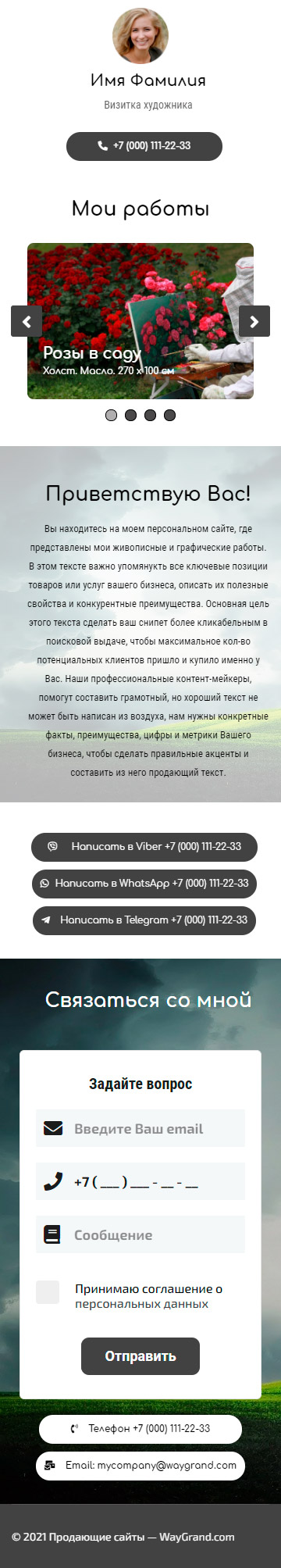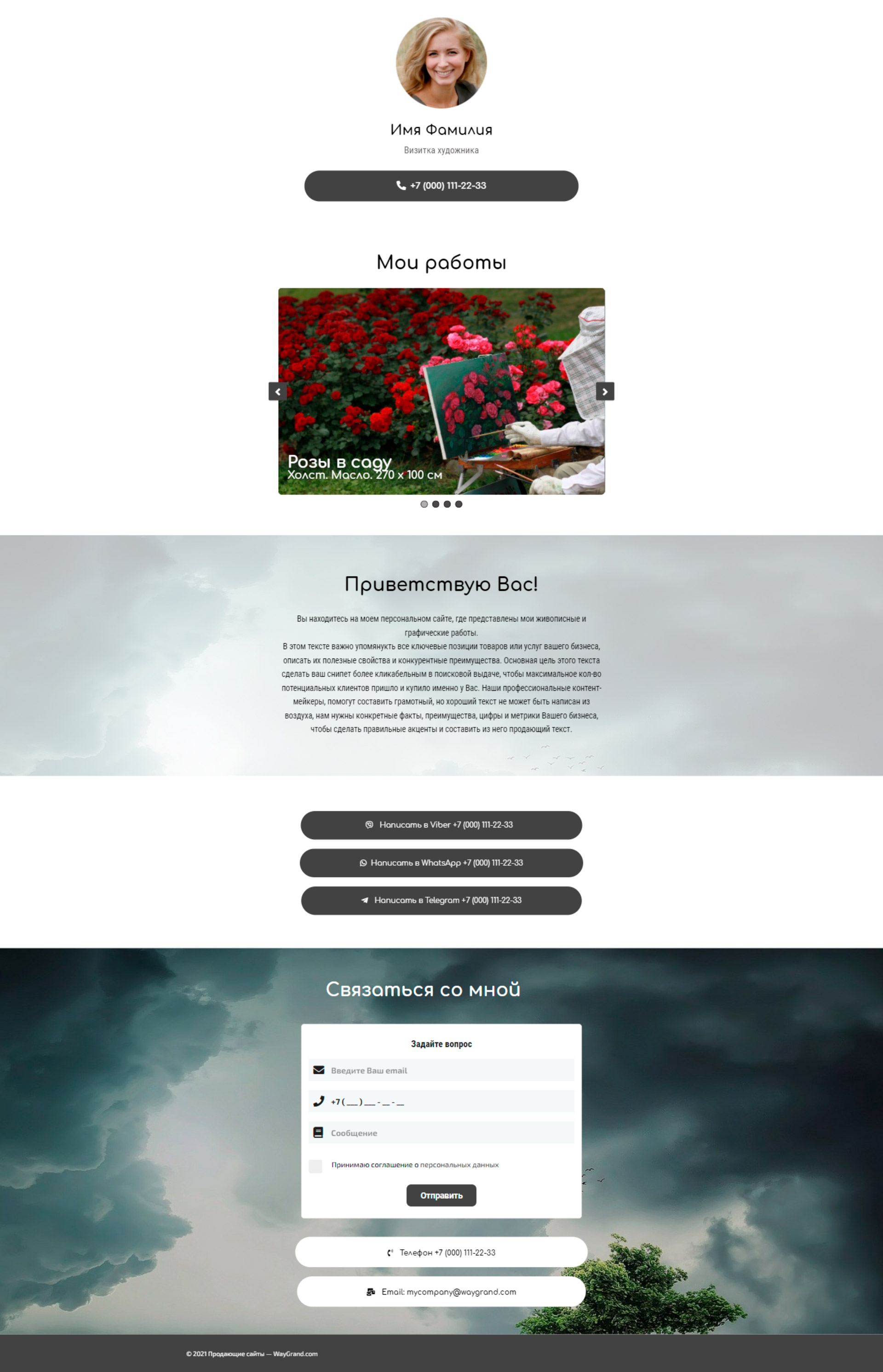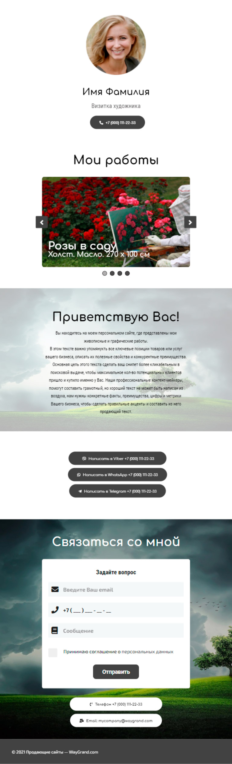 Закажите готовый продающий сайт визитка #0826101 в Керчь за 5-7 дня «под ключ»: свёрстан, отрисован и готов к рекламе. Тематика шаблона «Визитка художника».
