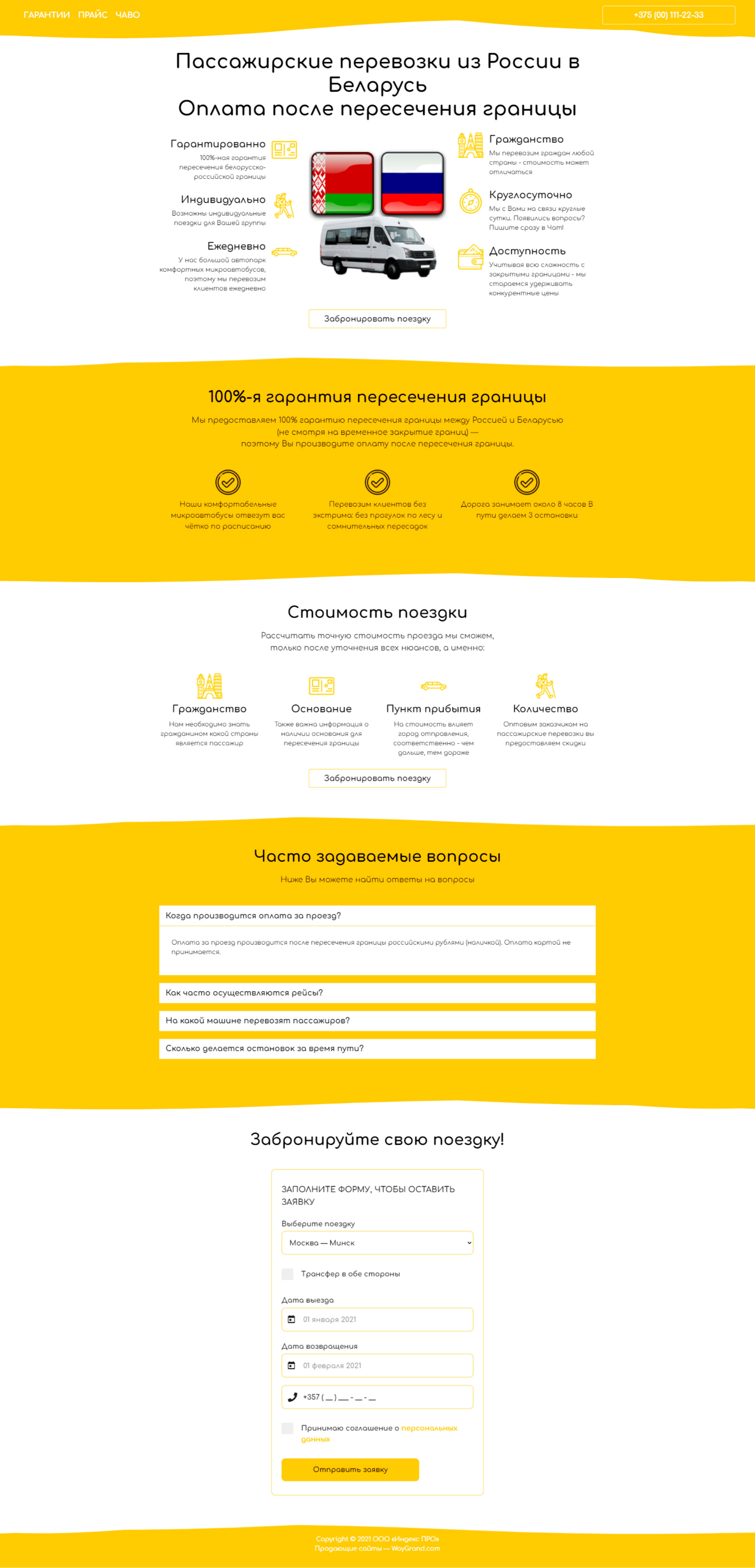 Закажите готовый продающий сайт лендинг #2528203 в Керчь за 1-3 дня «под ключ»: свёрстан, отрисован и готов к рекламе. Тематика шаблона «Пассажирские перевозки из России в Беларусь».