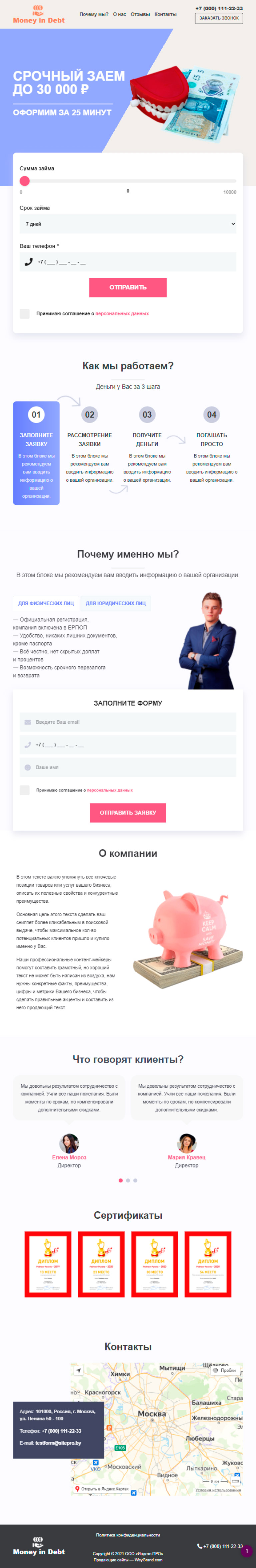 Закажите готовый продающий сайт лендинг #2825202 в Керчь за 1-3 дня «под ключ»: свёрстан, отрисован и готов к рекламе. Тематика шаблона «Деньги в долг».
