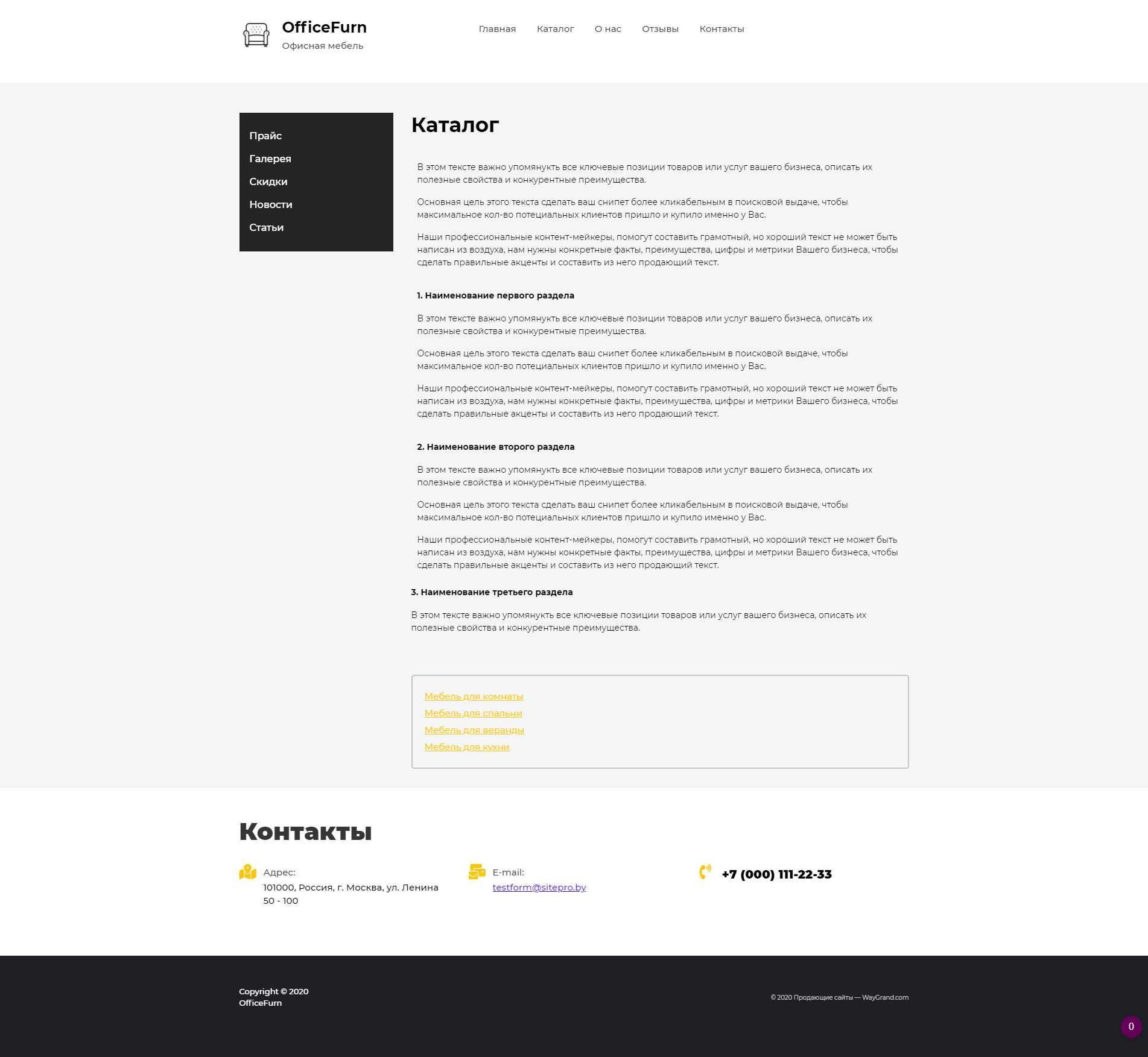 Закажите готовый продающий сайт визитка #0921301 в Керчь за 5-7 дня «под ключ»: свёрстан, отрисован и готов к рекламе. Тематика шаблона «Офисная мебель».