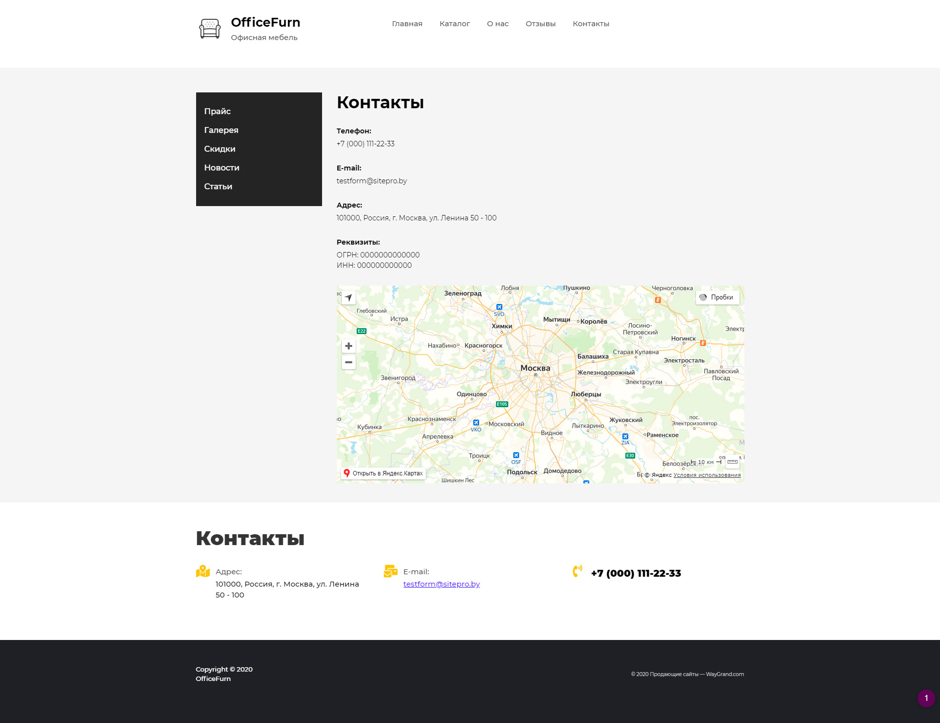 - Страница "Контакты"
