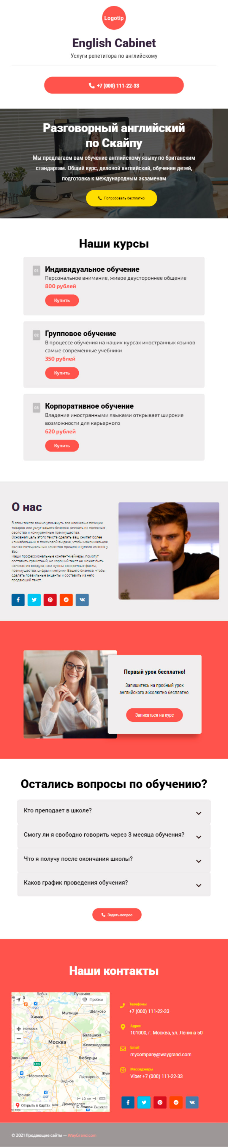 Закажите готовый продающий сайт визитка #1463101 в Керчь за 5-7 дня «под ключ»: свёрстан, отрисован и готов к рекламе. Тематика шаблона «Услуги репетитора по английскому».