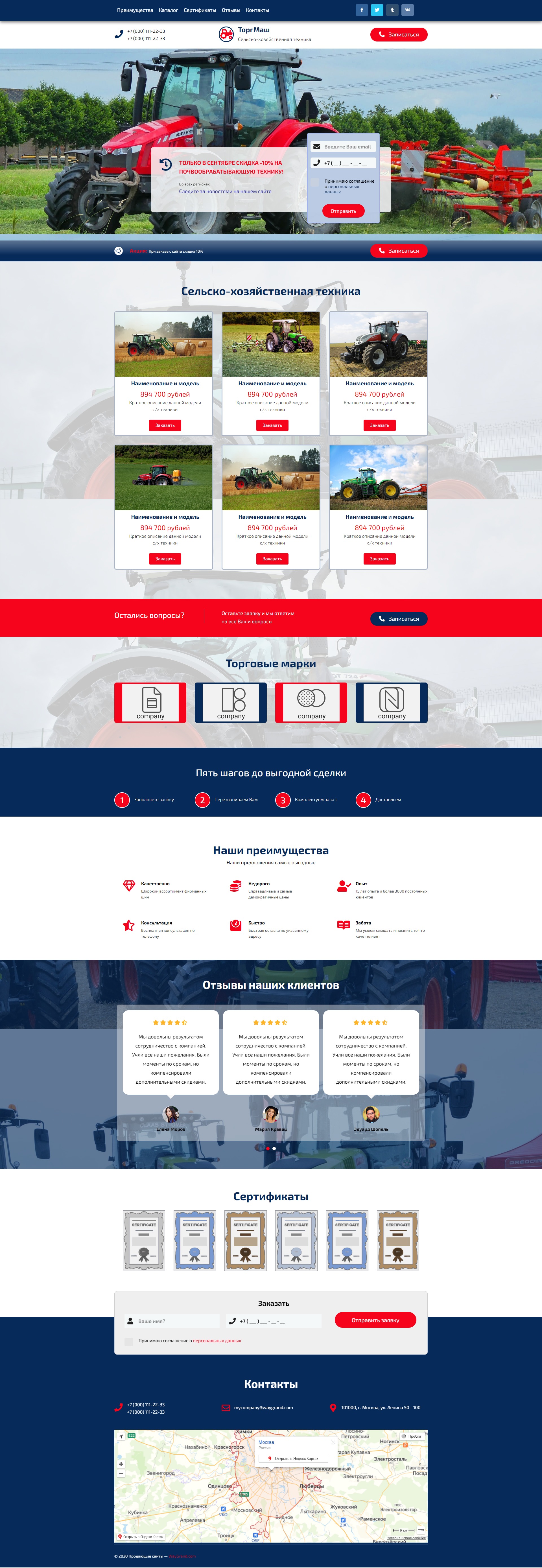 Закажите готовый продающий сайт лендинг #2553202 в Керчь за 1-3 дня «под ключ»: свёрстан, отрисован и готов к рекламе. Тематика шаблона «Сельско-хозяйственная техника».