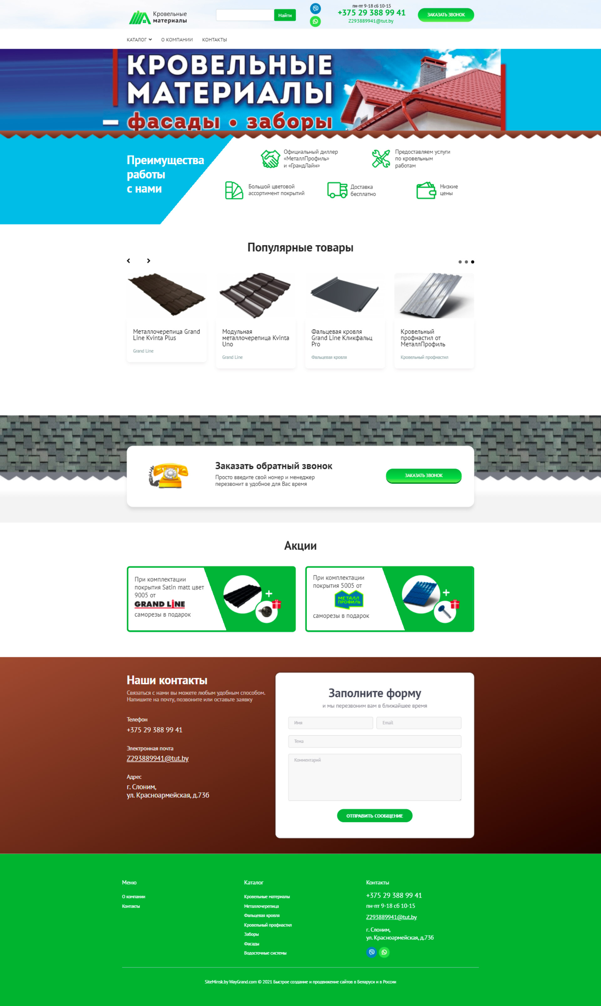 Закажите готовый продающий сайт визитка #324 в Керчь «под ключ» на waygrand по выгодной цене: свёрстан, отрисован и готов к рекламе. Тематика шаблона «Кровельные материалы».