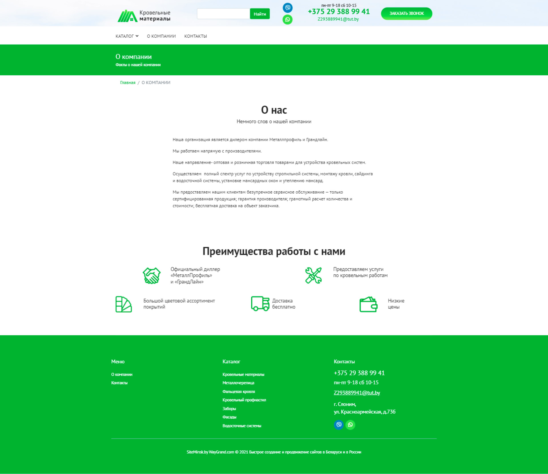 - Страница "О компании"