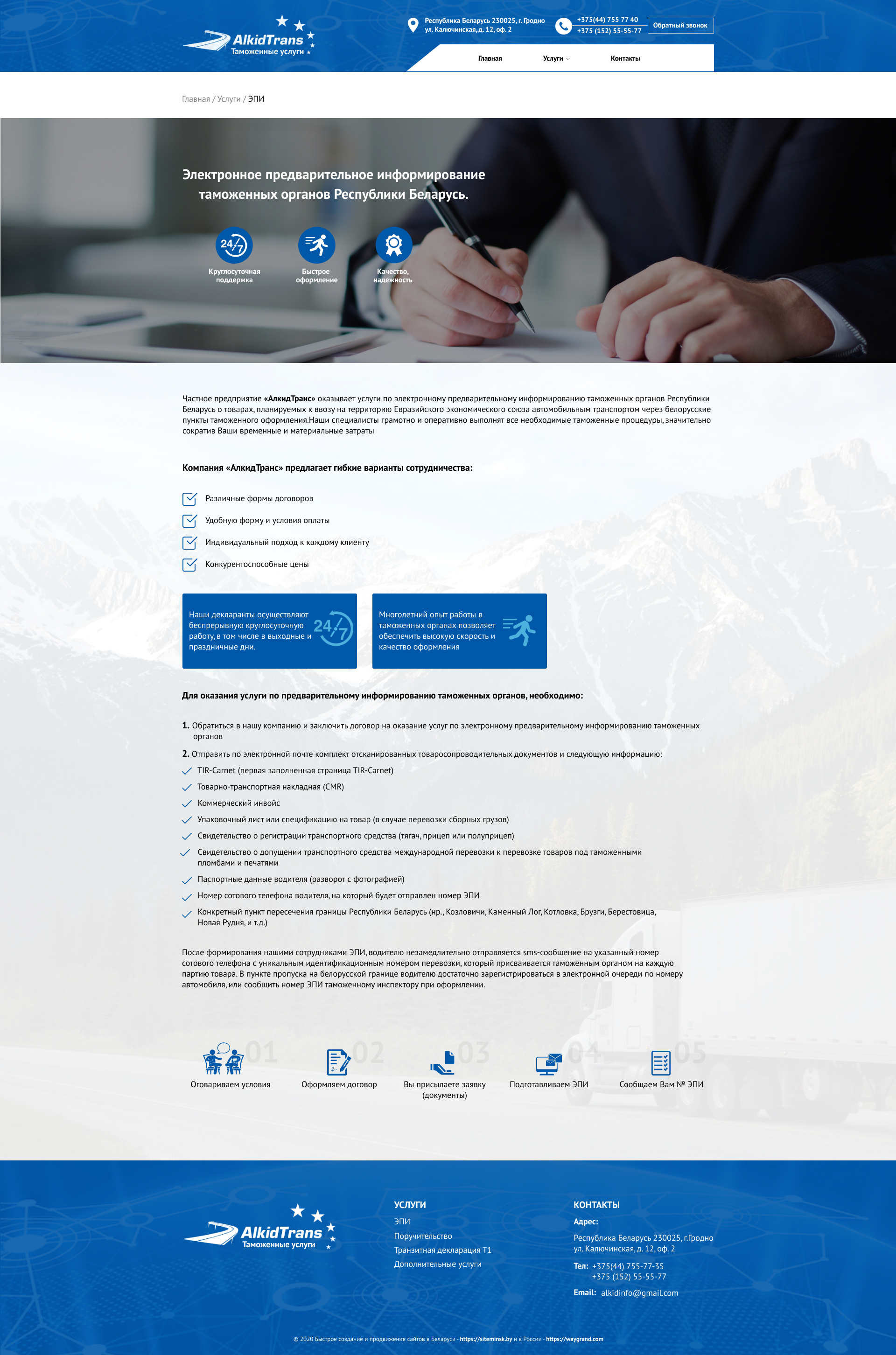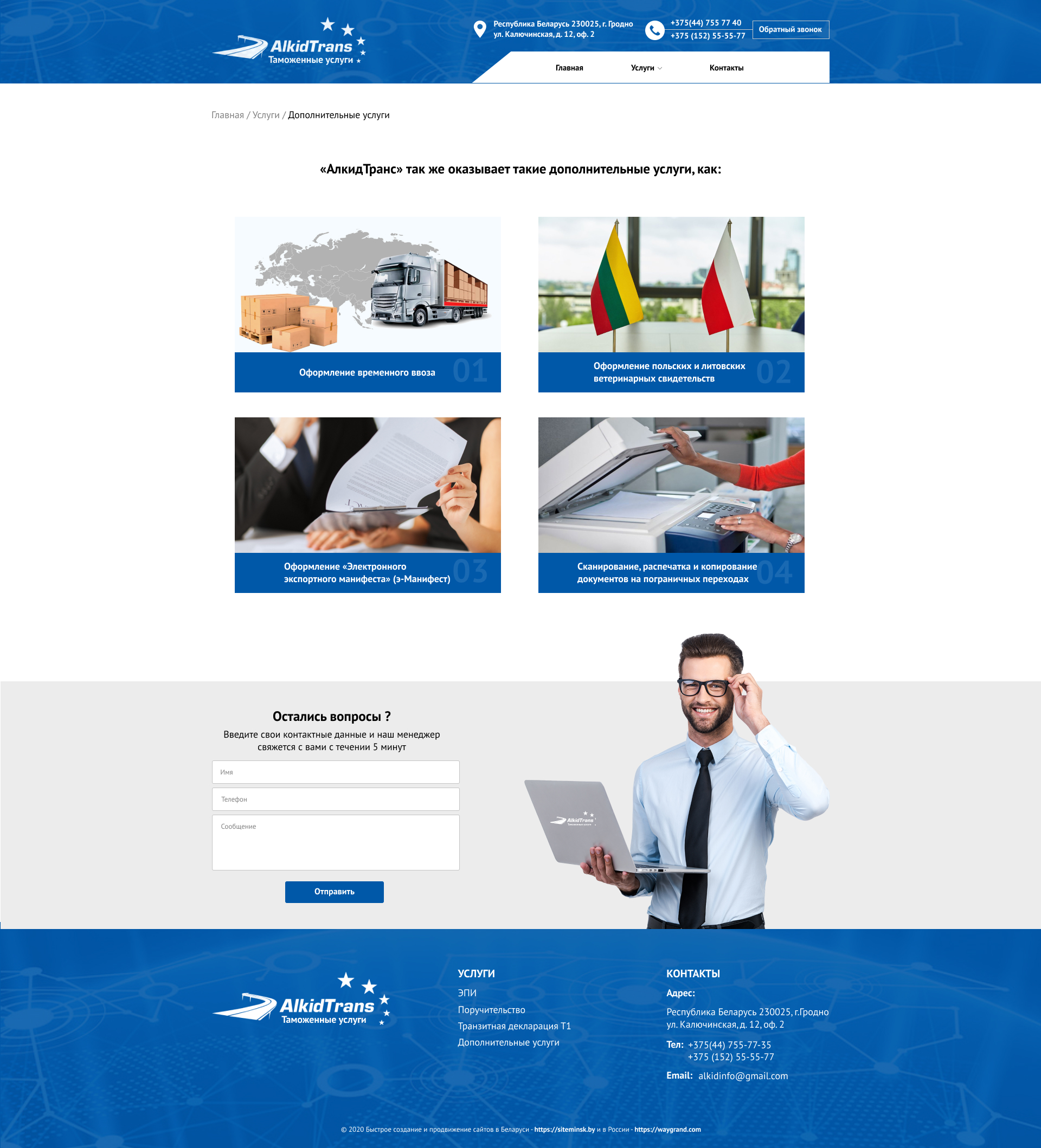 Закажите готовый продающий сайт визитка #234 в Керчь за 5-7 дня «под ключ»: свёрстан, отрисован и готов к рекламе. Тематика шаблона «Таможенные услуги».